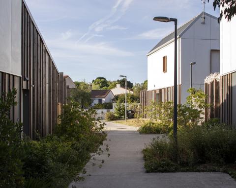 Le projet de la Croix-Chabineau à Haute-Goulaine se situe à proximité du bourg et des principaux équipements. Il façonne une variation de volumes habités : maisonnées adossées deux à deux, logements superposés, bâtiments intermédiaires.